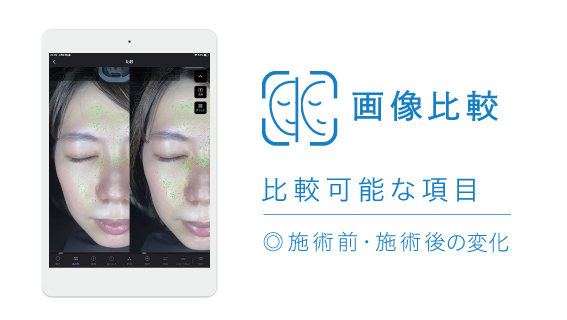 画像分析機能により、施術前・施術後の肌状態における変化、その見た目の印象変化について画像で分かりやすく比較分析が可能です。