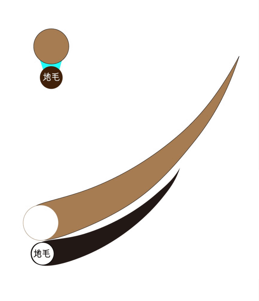 断面が平らな形状をした軽量タイプのエクステ。